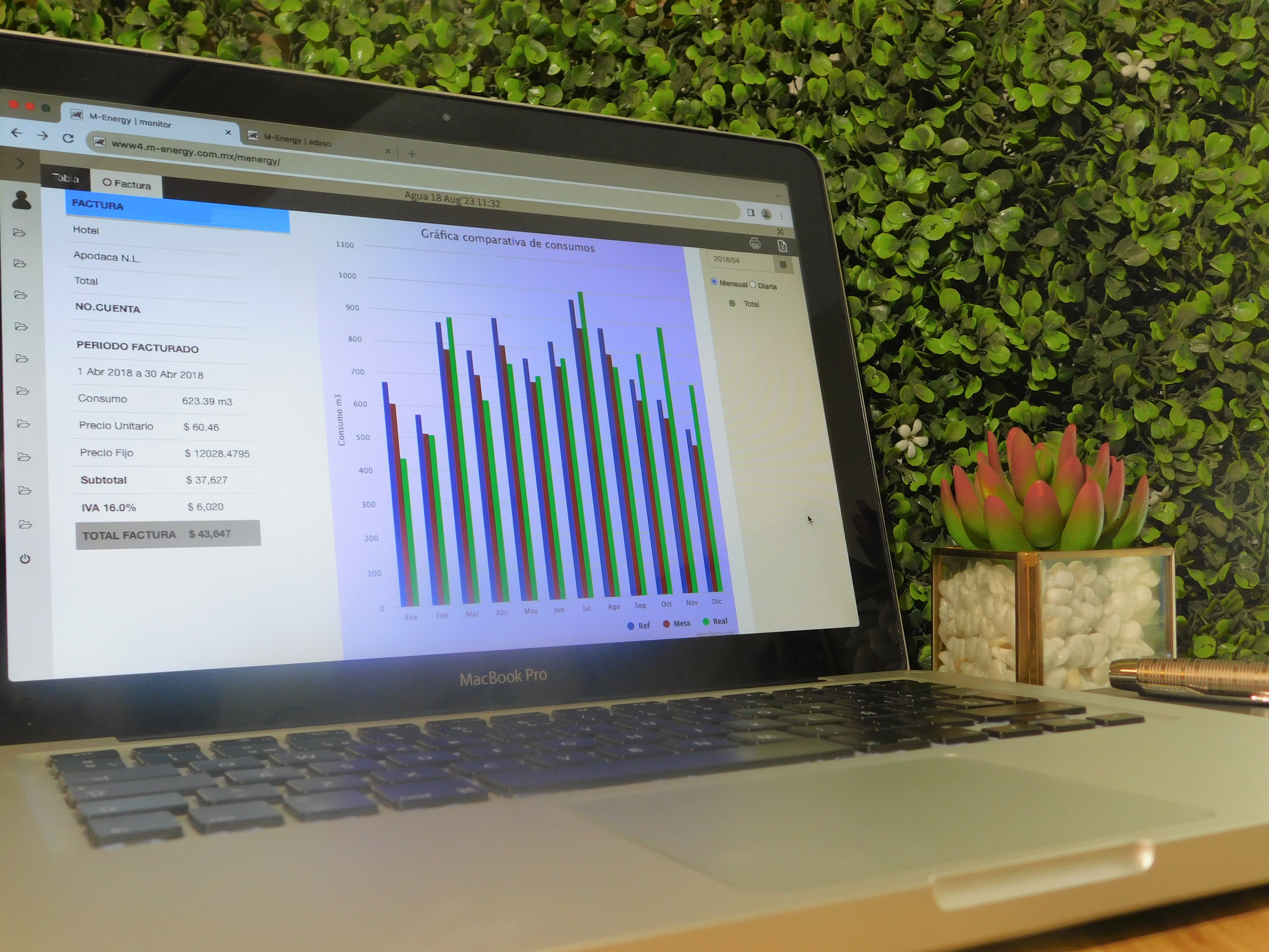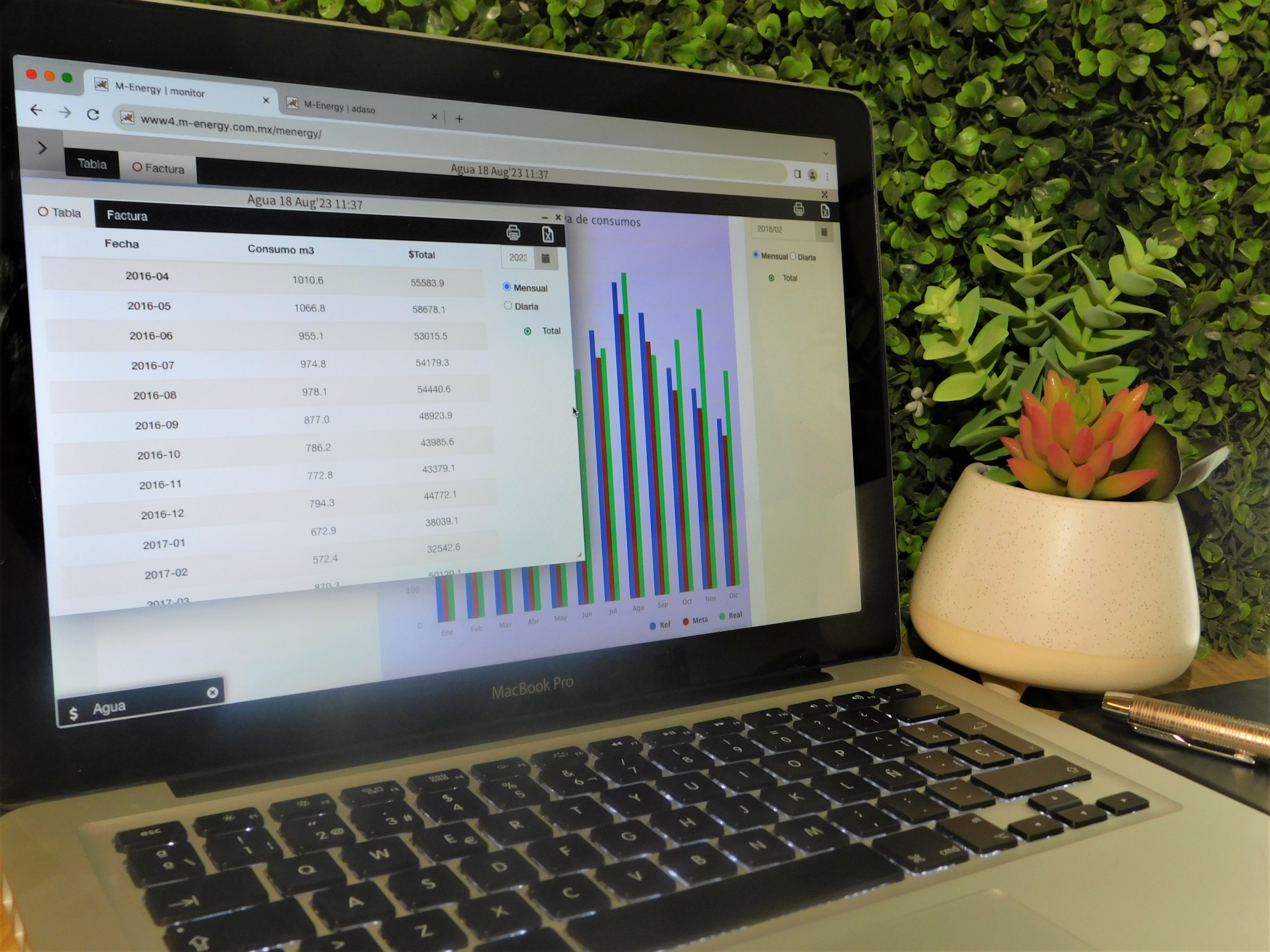 - Monitoreo de flujo de cada medidor, presenta gráficas y registros cincominutales, horarios, diarios y mensuales.